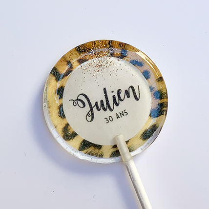 Sucettes personnalisées léopard, idéales pour vos thèmes jungle ou safari.