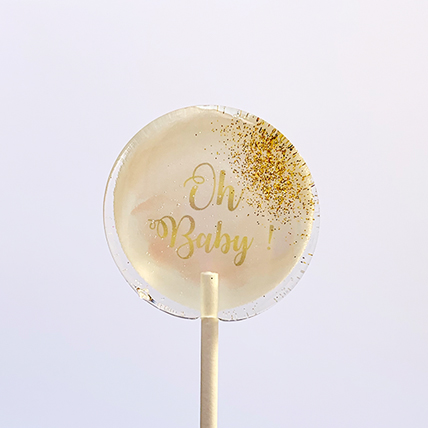 Sucettes personnalisées avec fond pêche & écriture or.