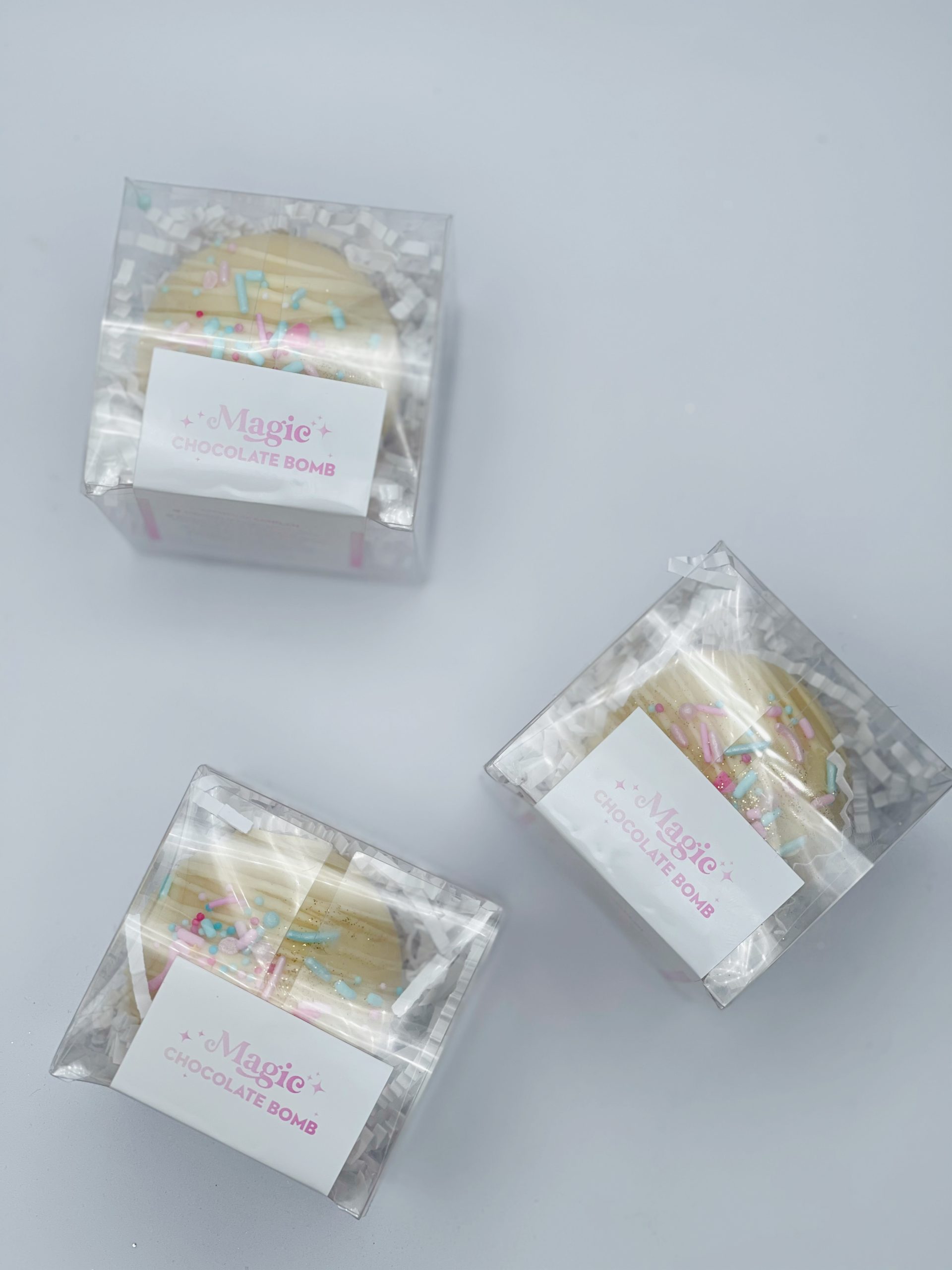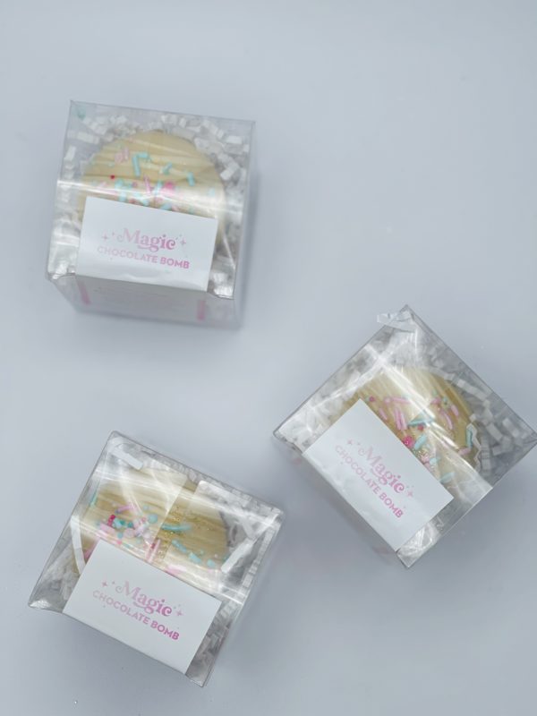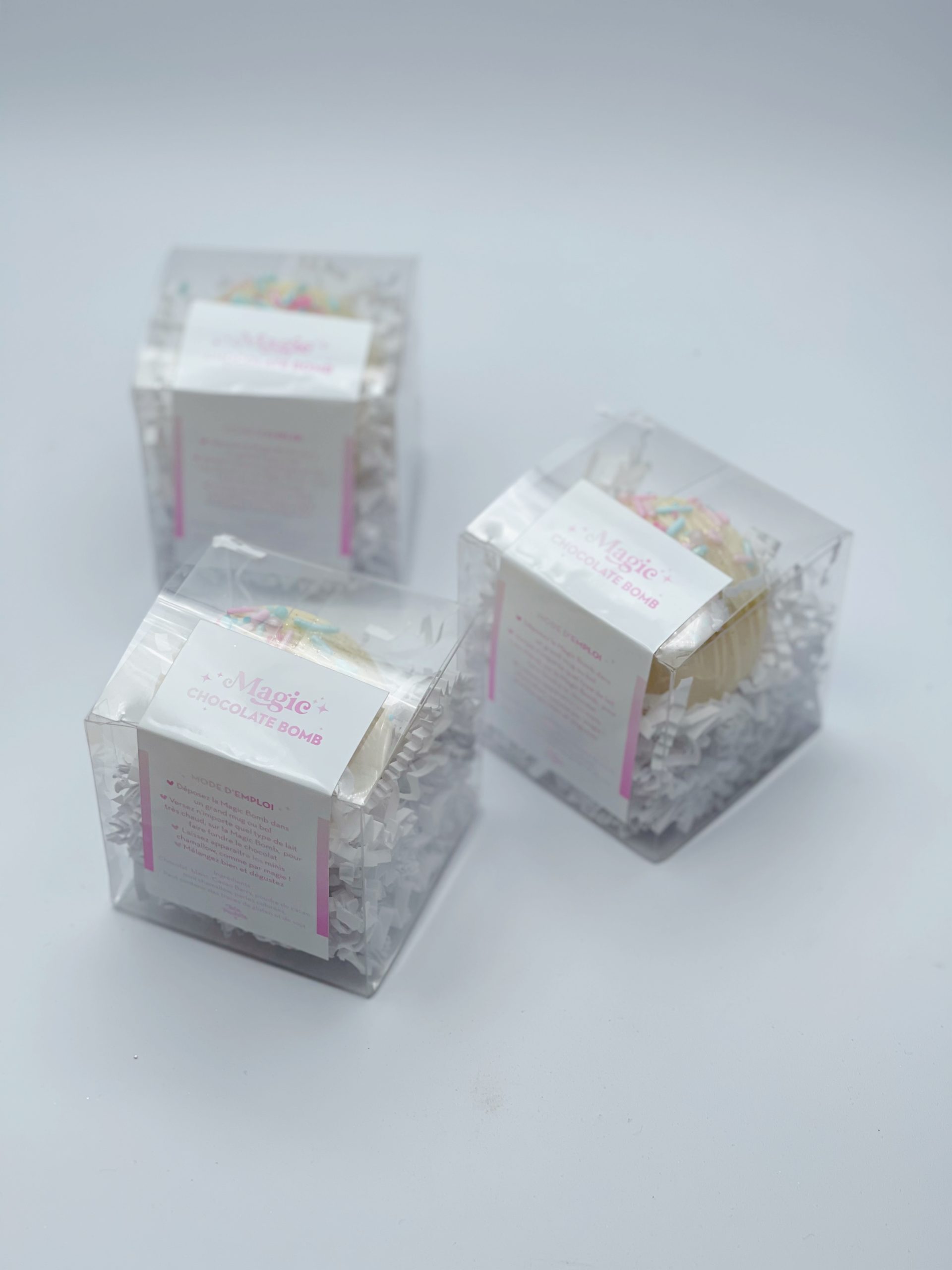 Une bombe en chocolat MAGIQUE, qui explose au contact de lait très chaud et dévoile des minis guimauves, idéale pour se faire un chocolat chaud de folie en annonçant à sa meilleure amie, sa maman, sa mamie, le sexe de son bébé !