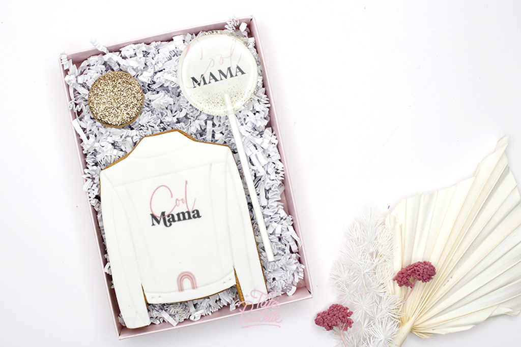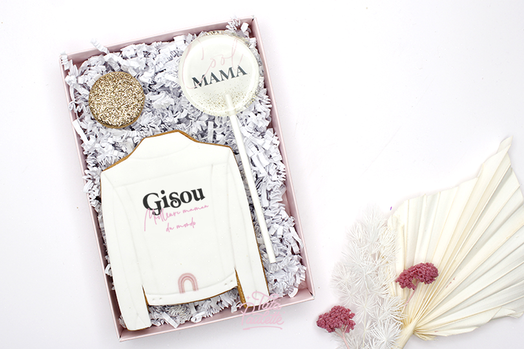 Le coffret comprend 2 gros sablés + 1 sucette :