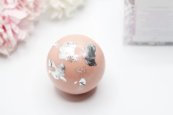 Une bombe en chocolat MAGIQUE de couleur pêche, au chocolat blanc, qui explose au contact de lait très chaud et dévoile des minis guimauves et de la poudre de café soluble.