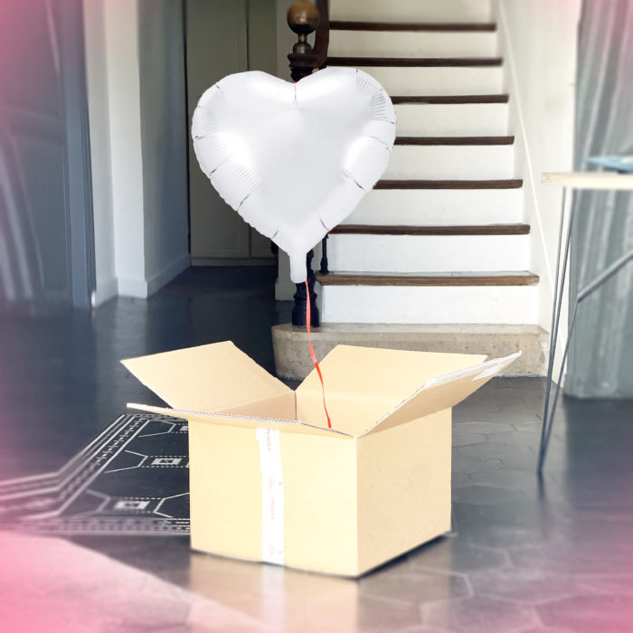 Vous avez la possibilité d’ajouter en supplément un ballon coeur, qui sortira des l’ouverture du colis, pour un effet wahouuuu de folie !